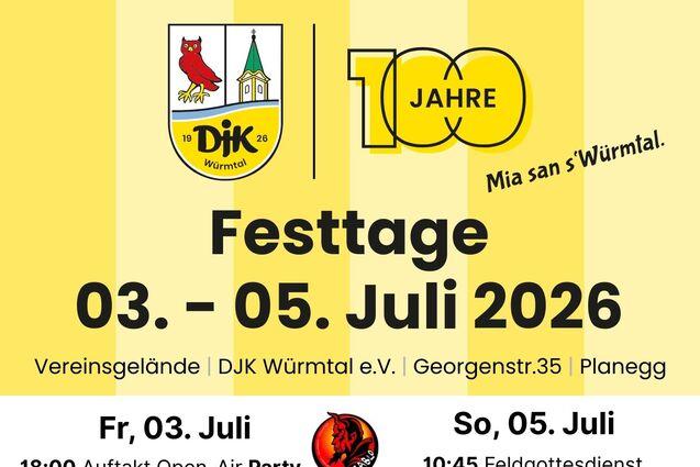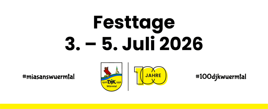 Würmtal, Juli 2025 – Die DJK Würmtal feiert im kommenden Jahr ihr 100-jähriges Bestehen – ein stolzes Jubiläum, das mit einem vielfältigen Festprogramm vom 3. bis 5. Juli 2026 begangen wird. Unter dem Motto „100 Jahre DJK – Sport, Spaß, Zusammenhalt“ lädt der Verein Mitglieder, Freunde, Familien und Interessierte herzlich zum Mitfeiern ein.