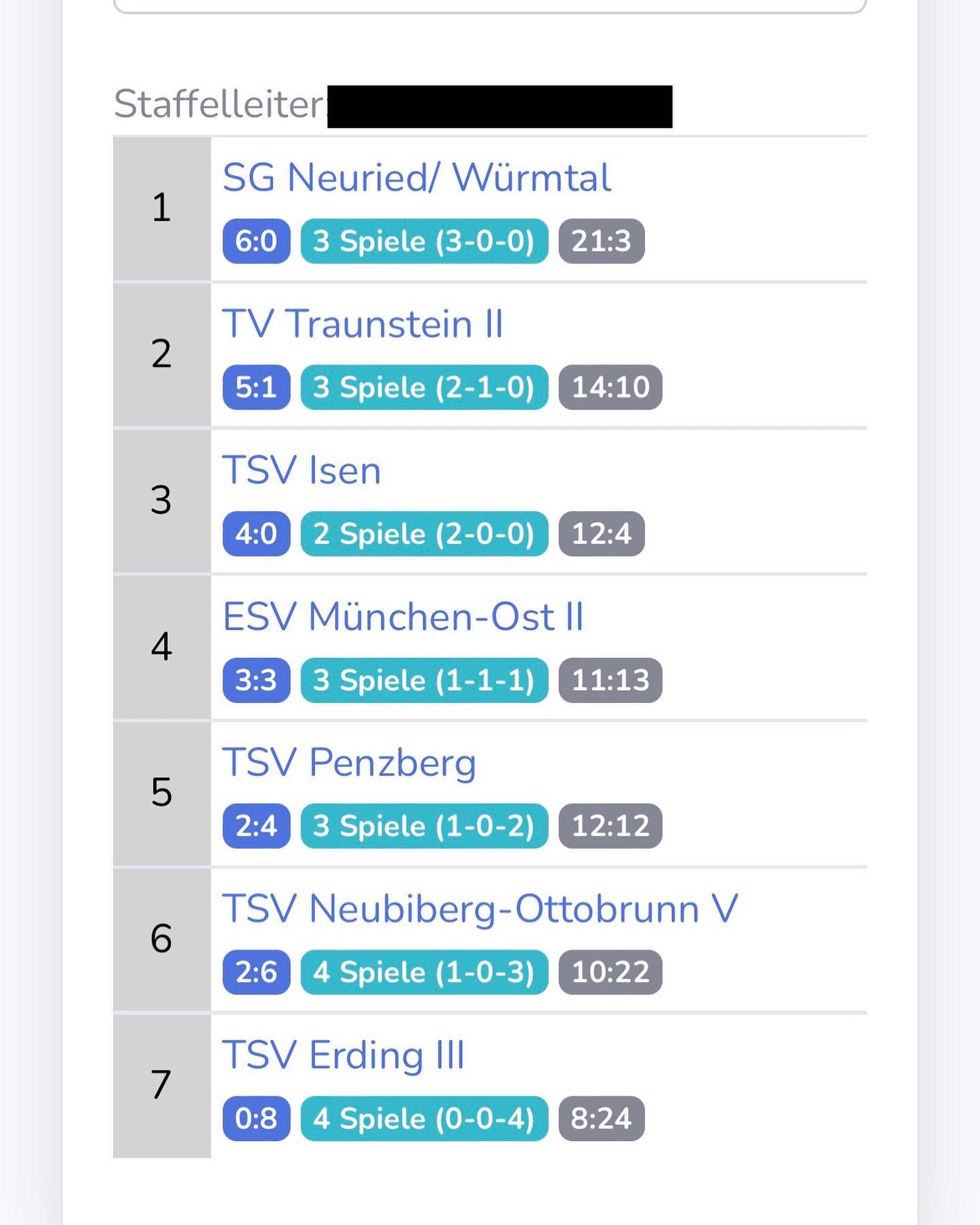 Das Team der Gruppe SüdOst hat den TV Traunstein II mit 7:1 und den TSV Isen mit 6:2 besiegt und ist damit weiterhin ungeschlagen an der Tabellenspitze. 🥳