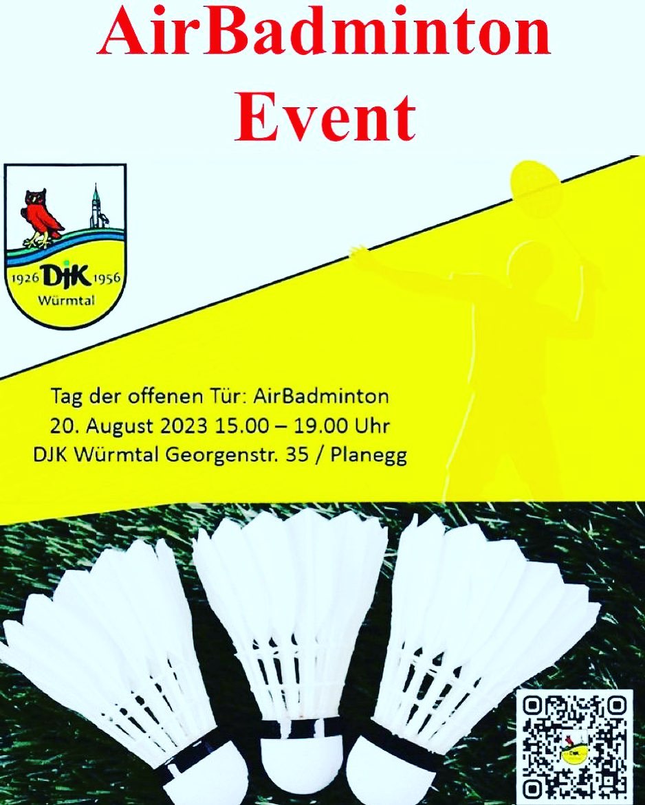 AirBadminton-Event auf dem Fußballplatz der DJK Würmtal von 15 bis 19 Uhr.