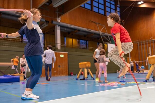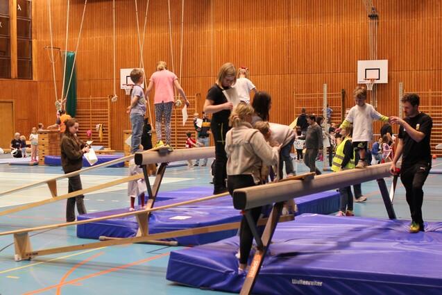 Über 50 Kinder probieren sich an 11 Stationen mit 3 Schwierigkeitsgraden aus