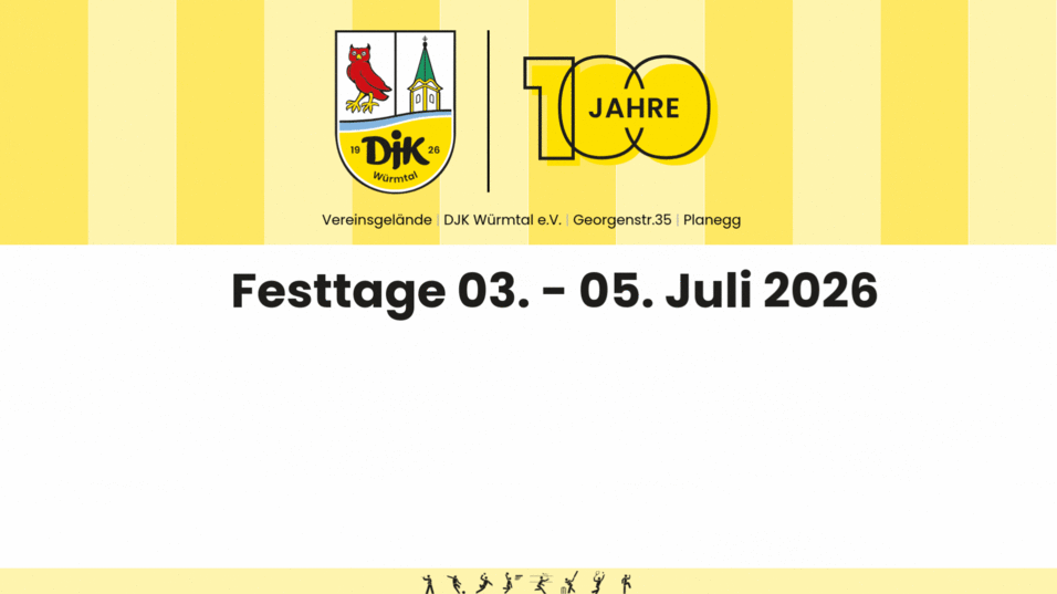 Dazu gibt es über das Jahr eine Reihe von Turnieren und Veranstaltungen unter dem Motto 100 Jahre DJK Würmtal. Diese werden wir im Laufe der Zeit bekannt geben.